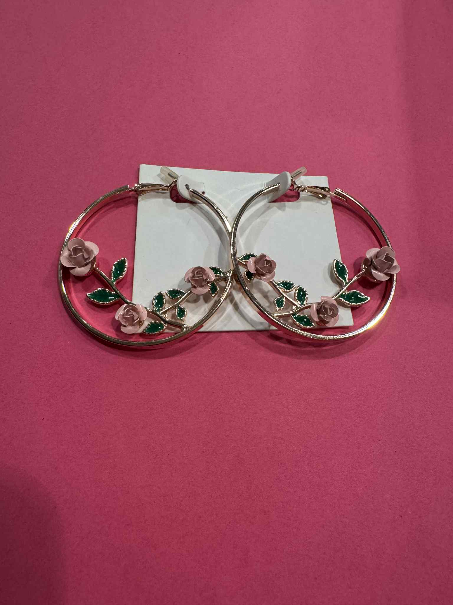 Pink Flower Hoop Earrings quantity